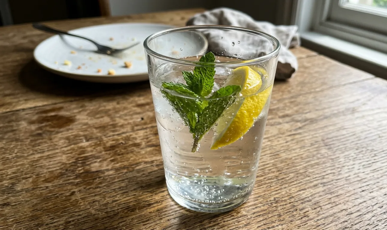 Sklenice teplé vody s kapkou citronové šťávy je skvělý způsob, jak spláchnout zbytky jídla a snížit chuť na sladké.